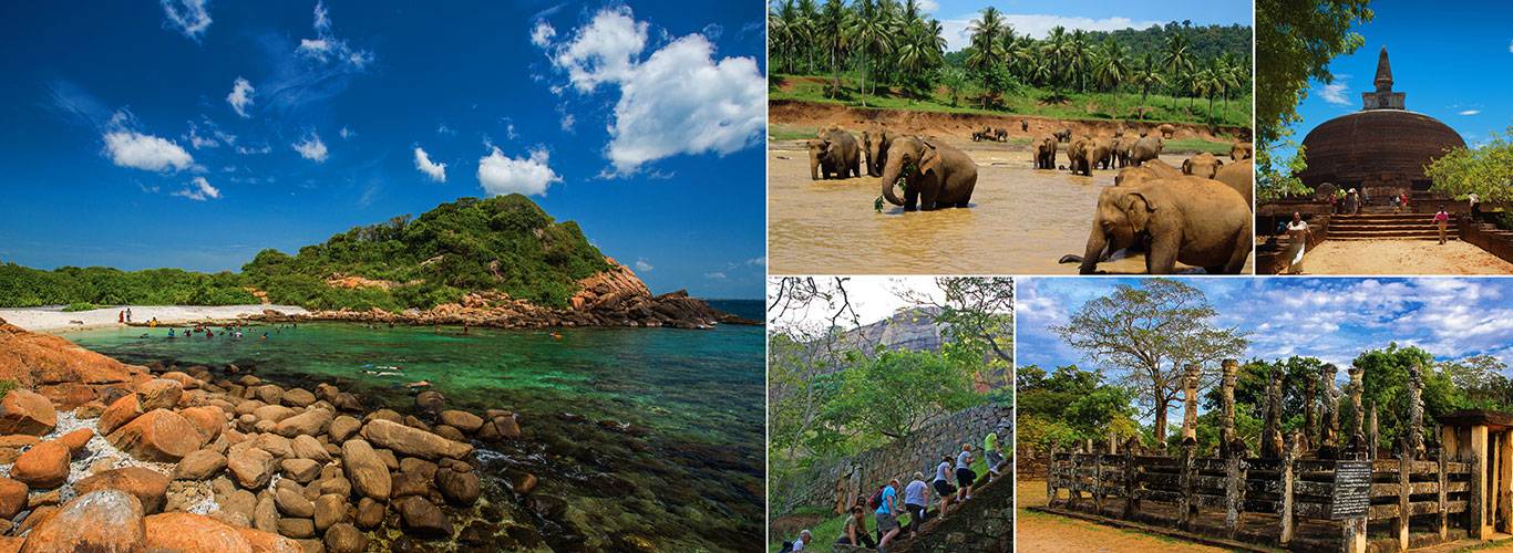 Pinnawala,Sigiriya, Polonnaruwa, Jaffna, Trincomalee, Dambulla, Kandy, Nuwaraeliya, Ella, Yala, Mirissa, Galle, Bentota, Colombo
